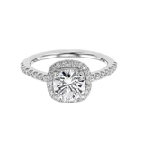 Cushion Rollover Diamond Halo Engagement Ring in 14k White Gold