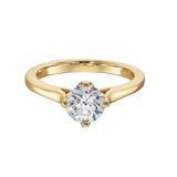 18k Yellow Gold Solitaire East-West Diamond Engagement Ring featuring an East-West claw set. Handmade and set to your choice of diamond, four yellow gold prongs support the centre stone.| Metal | 18k Yellow Gold |