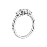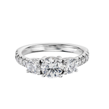 18k White Gold Three Stone Pavé Diamond Engagement Ring