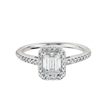 Emerald Cut Halo Diamond Engagement Ring in 18k White Gold
